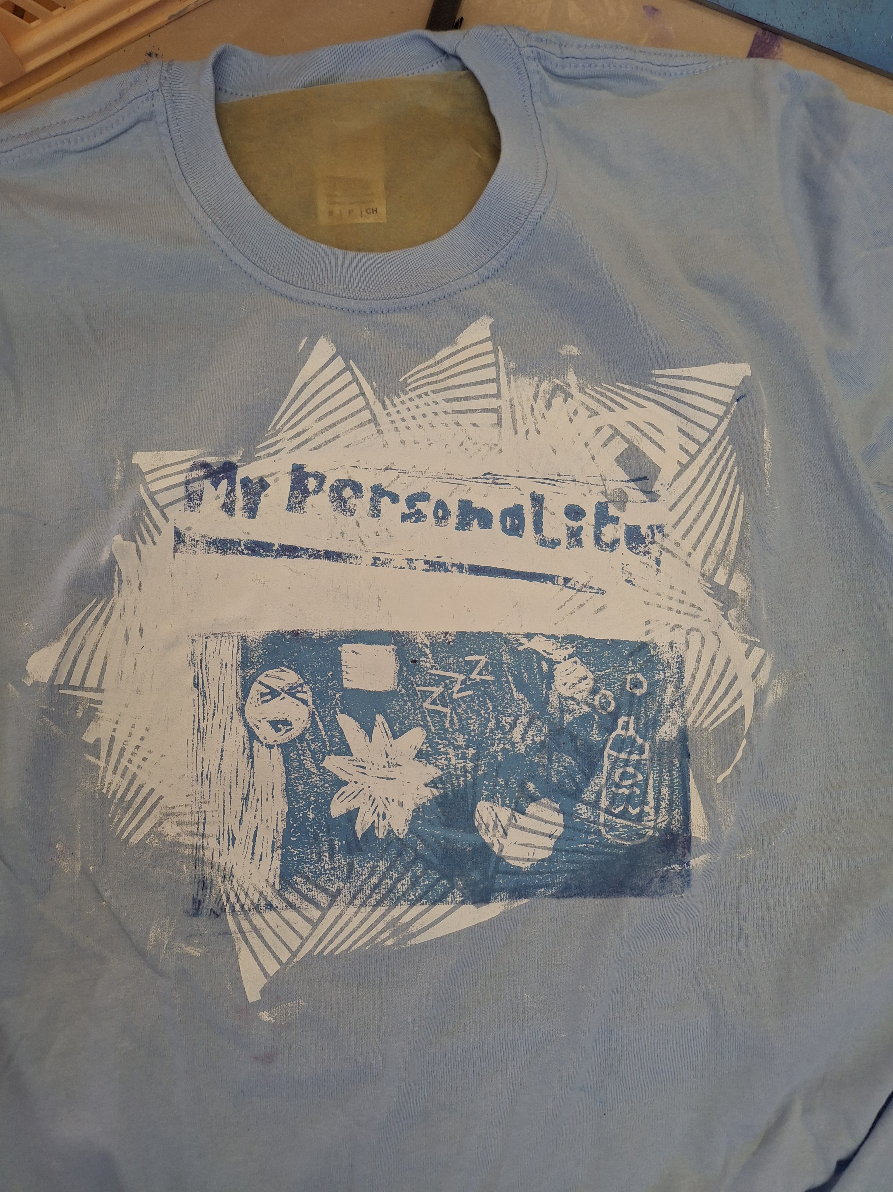 The whole of the third day was dedicated to finishing off our t-shirt designs. We started off by learning how to use linocut blocks to create detailed designs. We all drew out a design and then spent the morning cutting away the lino block to create a re-usable printing block. After lunch we inked up and tested our linos, made any final cuts and then printed onto our t-shirts.