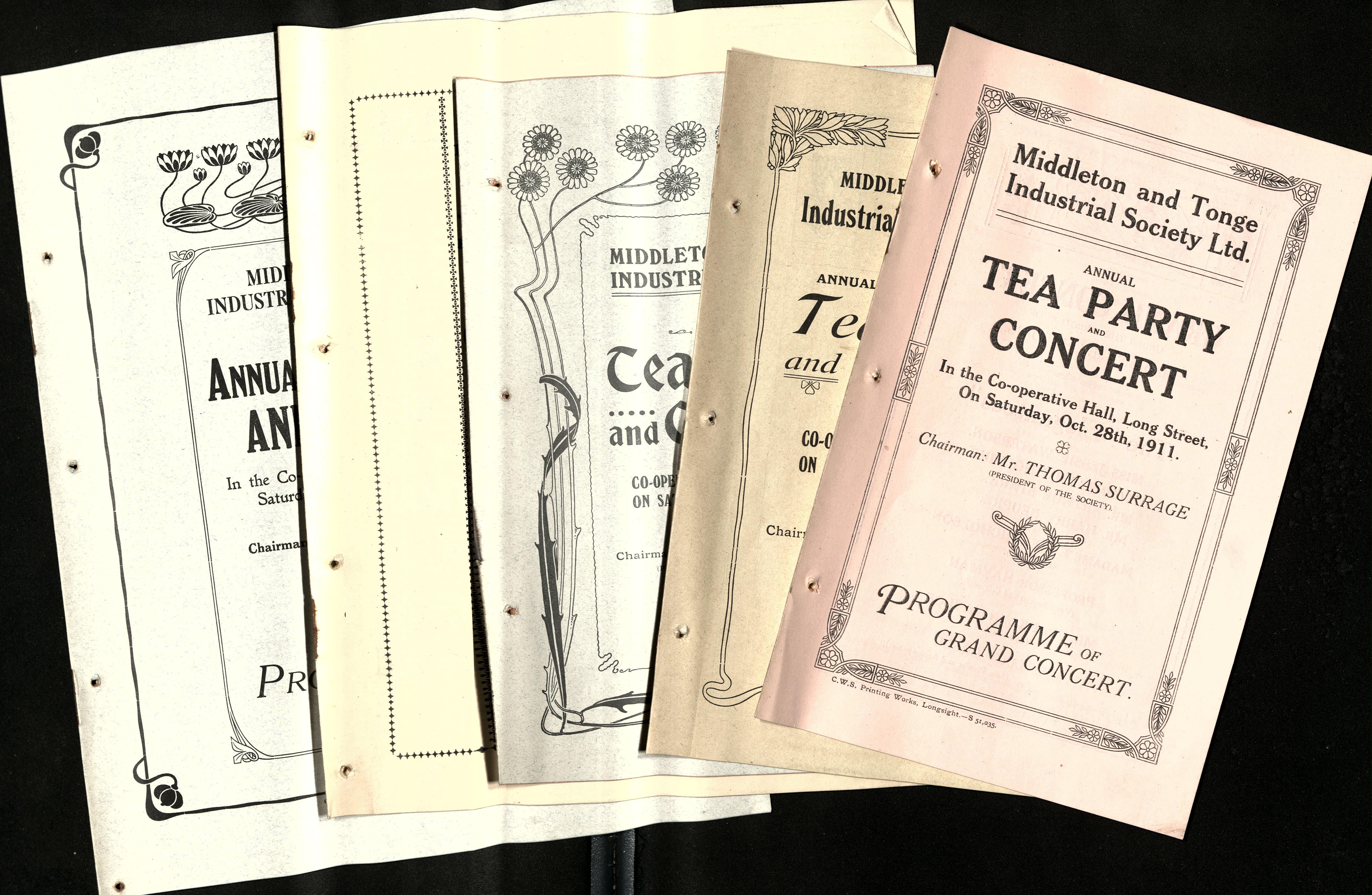 These are from Middleton & Tonge Industrial Society’s Annual Festivals and printed on them are the Annual Reports of the Society for the past year.