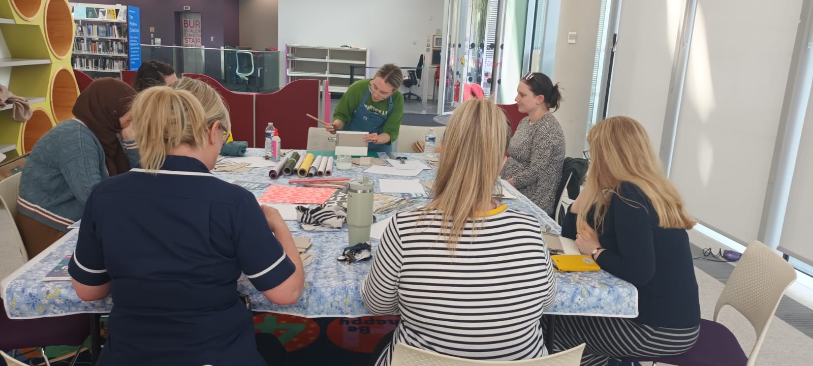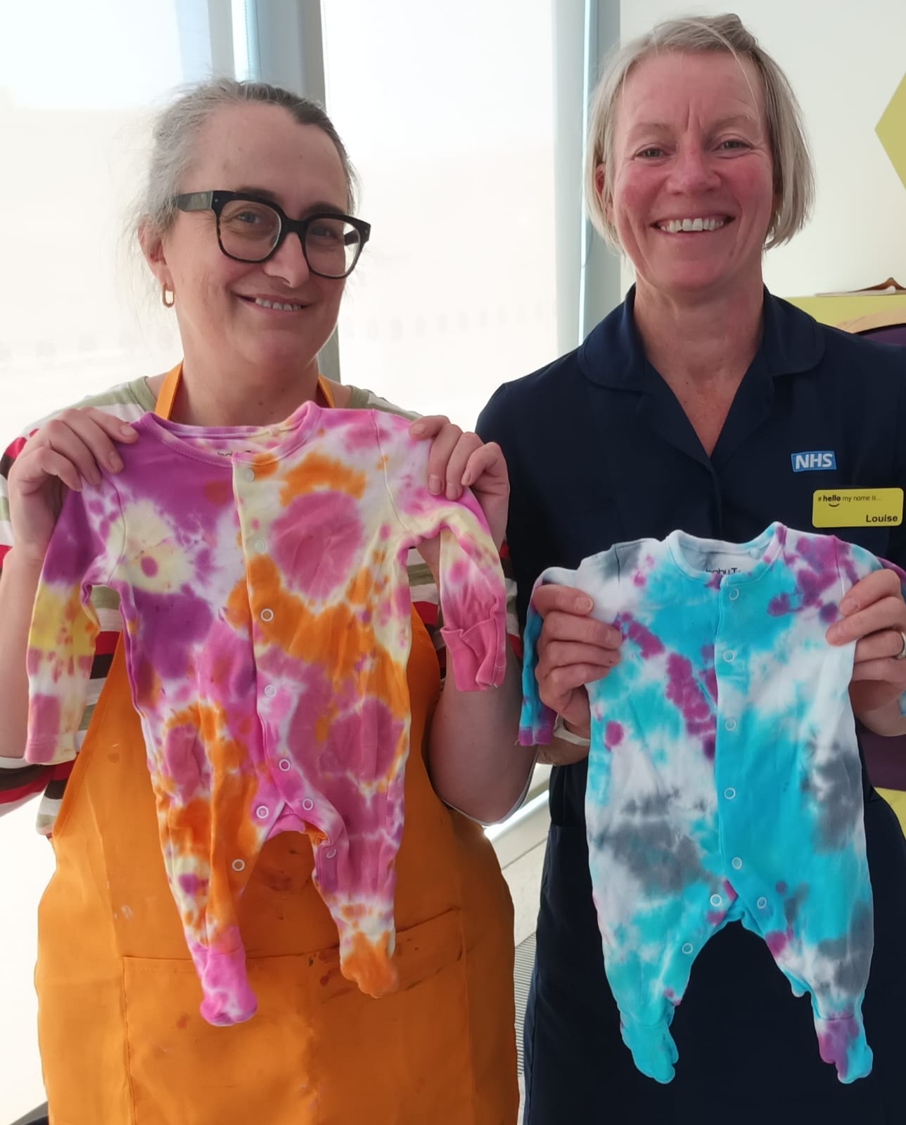 Each fortnightly session combines artist-led creative activities with support from local maternity services, including midwives and early years specialists. Activities have included making art journals, tie-dye baby grows, block-printing burp cloths, and gentle yoga – all aimed at boosting confidence and wellbeing.