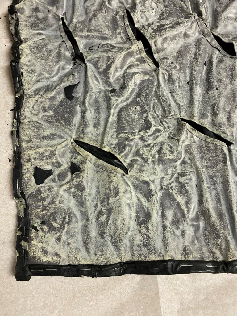 Over the past decade, Repetition has become fragile and unstable. The latex backing has deteriorated meaning the sculpture can no longer be safely displayed.