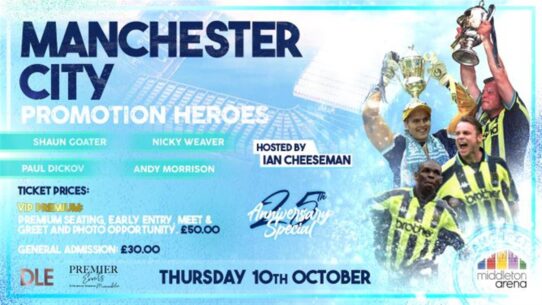 Join us for an unforgettable evening with the Manchester City Promotion Heroes of 1999!