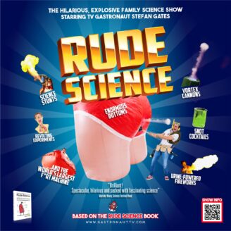 Expect enormous bottoms, f*rt machines, snot cocktails, vast whoopee cushions, pee-powered fireworks and ear-wax-oozing mannequins in this celebration of the fascinating bodily science essential to life. The show transforms complex biology, physics and chemistry into educational hilarity using Stef’s signature stunts and encyclopaedic science knowledge.
